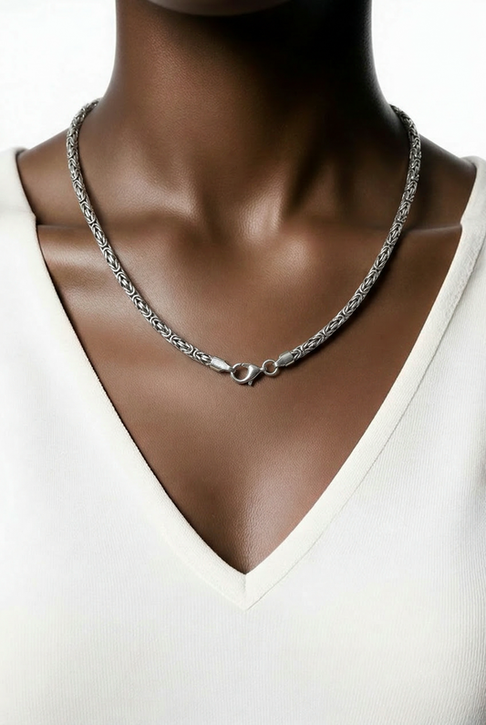 4 mm Bali Handcrafted Byzantine Sterling Silver Chain • Lobster Clasp • Perfect Gift for Him or Her