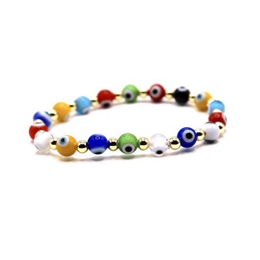 Beaded Bracelet blue Evil eye •Paired with Crystals •Evil Eye stretch Bracelet •Birthday Gift