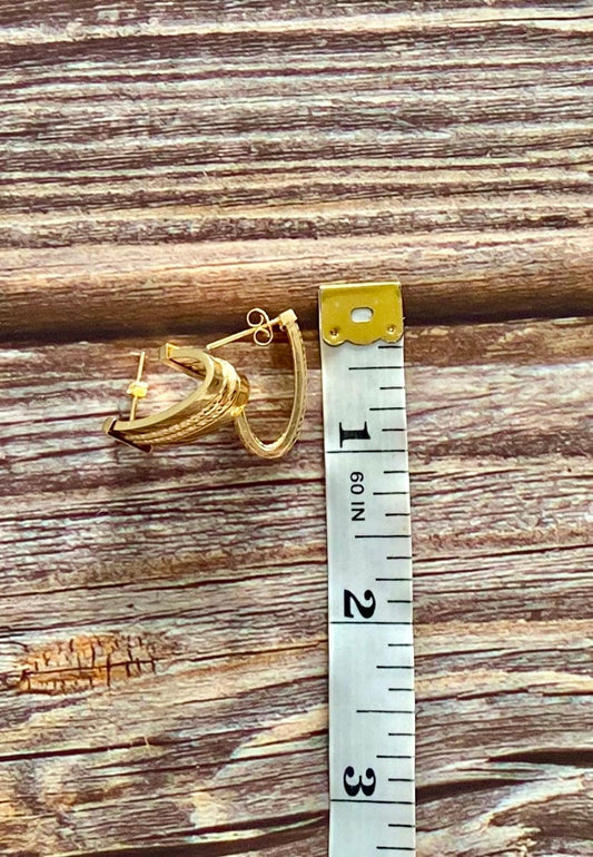 14K Gold U-Link Earrings •Textured Center •Rectangular Gold Earrings •U-Shaped Gold Hoops •Paperclip Gold Earrings •Superb Gift for her