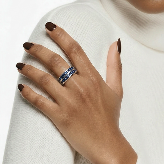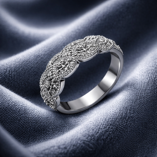 Diamond Ring 925 Silver •Round genuine Diamonds •Ring for her or him •Anniversary Band in Sterling Silver