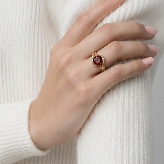 Natural Madeira Citrine and Zircon 925 Silver gold-plated Ring• Silver Ring for Woman •Birthday Gift for Mom