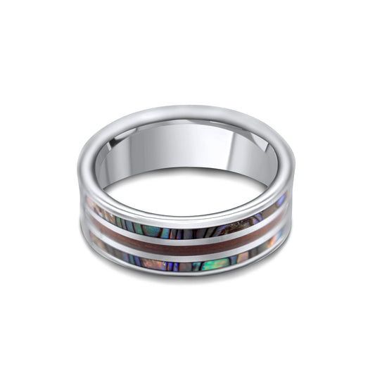 Tungsten Ring with Koa Wood and Abalone •8.00 mm Ring band •Gift for special occasion •Men Wedding Bands