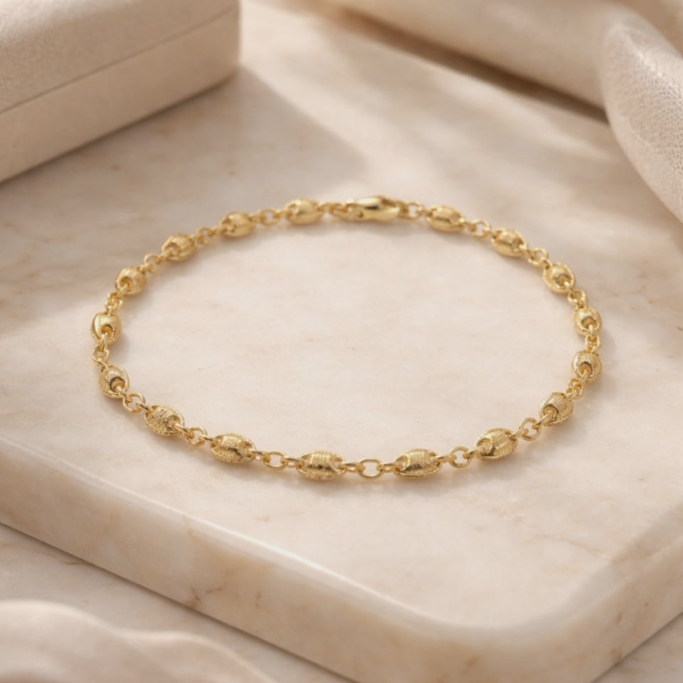Elegant and versatile, this Gold Filled basic bracelet features a stylish puff mariner chain design with a polished golden finish. Crafted in durable gold-filled style, it offers the luxurious look of fine jewelry at an affordable price. Measuring 6 inches in length with 3mm thickness, this bracelet is perfect for everyday wear, layering with other bracelets, or gifting to someone special. Lightweight, comfortable, and polished for lasting shine, it’s a timeless addition to any jewelry collection.